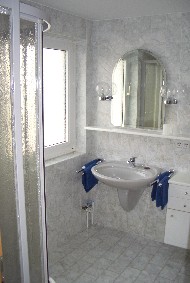 Diese Ferienwohung befindet sich im erstem Obergeschoss und verfügt über zwei getrennte Schlafzimmer, einen Aufenthaltsraum mit Küchenzeile und TV sowie ein geräumiges Duschbad. Die Gesamtgröße beträgt etwa 55 qm. Bei Bedarf steht auch ein zweites Badezimmer mit Dusche zur Verfügung.